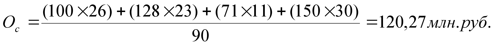 Необходимо рассчитать среднюю сумму вложений по состоянию на 01.04.96. Для начала рассчитаем остаток суммы вложения на каждый день её изменения. 1.01.97 – 26.01.97 – 100 млн. руб. 26.01.97 – 19.02.97 – 128 млн. руб. 19.02.97 – 1.03.97 – 71 млн. руб. 1.03.97 – 1.04.97 – 150 млн. руб. На основе известных временных периодов вычисляем средний остаток вложенных средств (Ос) на протяжении всего периода времени с 01.01.97 по 30.03.97: