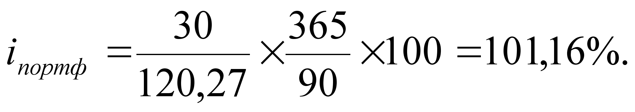 где t – число дней в рассматриваемом периоде. Доходность портфеля в рассматриваемом периоде составила: