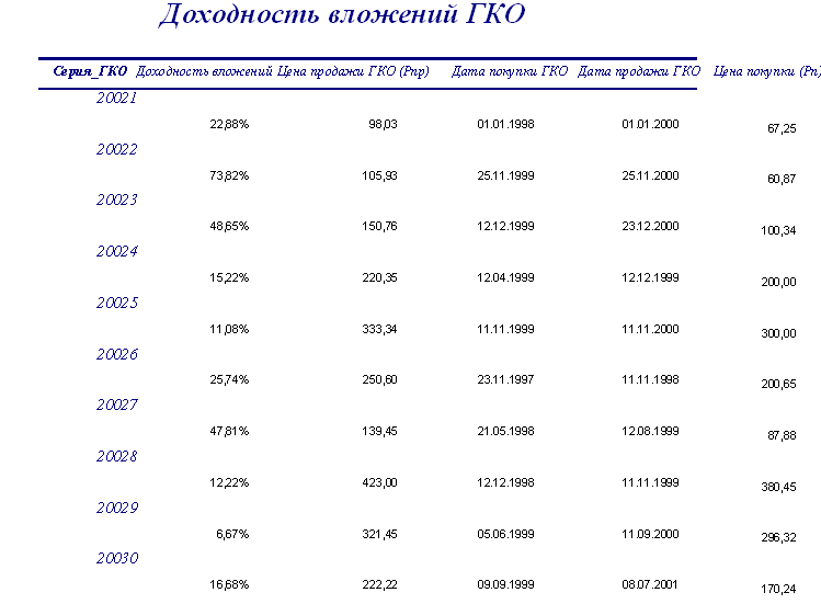 приложение б – реализация запросов БДПриложение Б.1 – реализация запроса «доходность вложений ГКО»