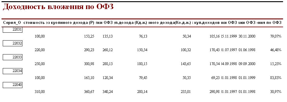 Таблица 7- Доходность вложения по ОФЗ
