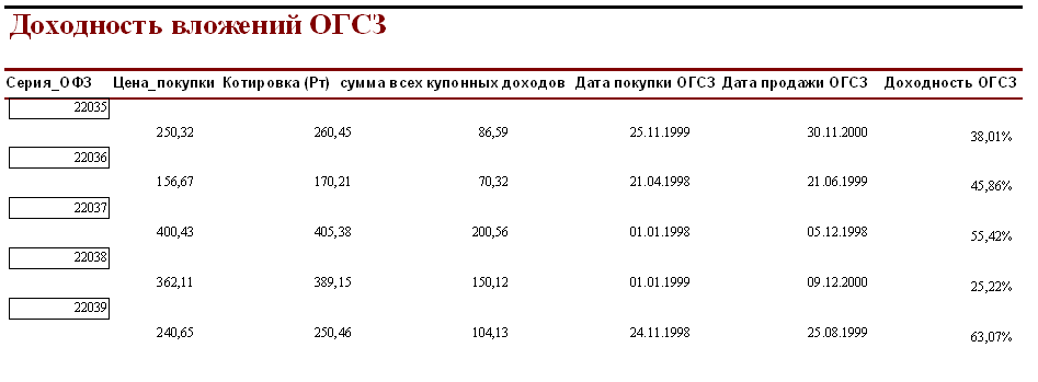Таблица 6- Доходность вложения по ОГСЗ