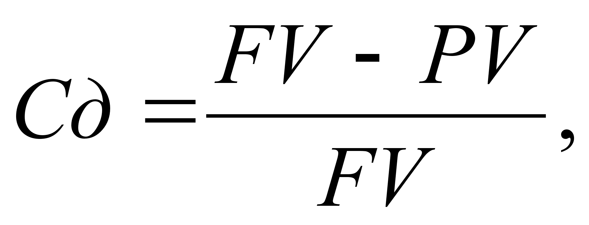 где FV – будущая стоимость активов; PV – современная стоимость активов. Метод дисконтирования по своей сути противоположен методу наращения и используется для определения суммы, которую необходимо уплатить сейчас при заданном уровне доходности операции, для того чтобы получить доход в будущем. Ставка процента, используемая в данном случае, называется ставкой дисконтирования (Cд), которая определяется по формуле: