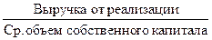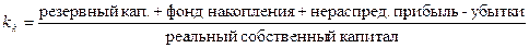 К1=Nр / Aчт, (5) где Ачт – чистые текущие активы, тыс.руб.; Nр – объем реализации, тыс.руб. Чистые текущие активы – это оборотные активы за вычетом краткосрочных долгов предприятия. Коэффициент К1 показывает эффективность использования оборотных активов. Высокий уровень этого показателя благоприятно характеризует кредитоспособность предприятия. Однако в случае, когда он очень высок или очень быстро увеличивается, можно предположить, что деятельность ведется в объемах, не соответствующих стоимости оборотных активов. Такая ситуация повышает вероятность замедления оборачиваемости задолженности или может вызвать падение продаж и вследствие этого – затруднения в расчетах предприятия со своими кредиторами. Замедление оборачиваемости дебиторской задолженности может быть вызвано неготовностью дебиторов к оплате возрастающих объемов поставок; может возникнуть и просроченная дебиторская задолженность. Падение объема продаж является результатом недостаточности материальных оборотных активов для продолжения бесперебойной деятельности в прежних масштабах. 2. Отношение объема реализации к собственному капиталу: К2=Nр / СК, (6) где СК – собственный капитал, тыс.руб. Этот показатель характеризует оборачиваемость собственных источников средств. Однако необходимо реально оценить величину собственного капитала. В активе баланса собственным источником покрытия соответствуют, в частности, нематериальные активы и запасы. При оценке стоимости собственного капитала рекомендуется уменьшить его на величину нематериальных активов, которые практически ничего бы не стоили, например, при вынужденной ликвидации или реорганизации предприятия. Кроме того, запасы надо уменьшить в соответствии с разницей цен, по какой они числятся на балансе и по какой они могли бы быть реализованы или списаны. Собственный капитал, откорректированный с учетом реального состояния названных элементов внеоборотных и оборотных активов, отражает более точно стоимость имущества предприятия в части, обеспеченной собственными источниками покрытия. Выручка от реализации, отнесенная к этой стоимости, показывает оборачиваемость собственных источников более точно, так как ни материальные активы, ни превышение балансовой стоимости запасов над реальной их стоимостью не являются факторами, способствующими увеличению объема продаж. 3. Отношение краткосрочной задолженности к собственному капиталу: К3=Дк / СК, (7) где Дк – краткосрочная задолженность, тыс.руб. Данный коэффициент показывает долю краткосрочной задолженности в собственном капитале предприятия. Если краткосрочная задолженность в несколько раз меньше собственного капитала, то можно расплатиться со всеми кредиторами полностью. На практике существуют первоочередные кредиторы, долги которым должны быть оплачены прежде, чем предъявят претензии остальные кредиторы. Поэтому практически правильнее сопоставлять первоочередную краткосрочную задолженность с величиной капитала и резервов. 4. Отношение дебиторской задолженности к выручке от реализации: К4=ДЗ / Nр, (8) где ДЗ – дебиторская задолженность, тыс.руб. Этот показатель дает представление о величине среднего периода времени, затрачиваемого на получение причитающихся с покупателей денег. Например, отношение 1:4 означает трехмесячный срок погашения 
