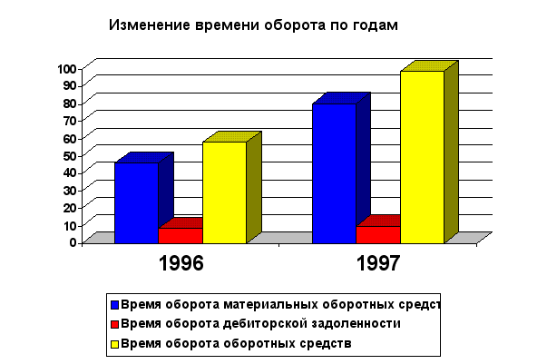 Рассчитанные показатели оборачиваемости оборотных средств приведены в таблице 6. Таблица 6. Показатели оборачиваемости оборотных средств за 1996-1997.