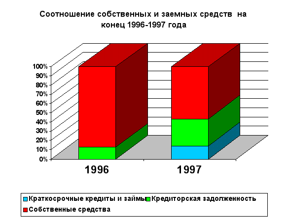 Рентабельность собственных средств также невысока и в течении 1996 года упала с 32,2% до 0,22, то есть в 146 раз и в 1997 году увеличилась лишь на 1,43%. Динамика этого показателя за последние годы позволяют сделать вывод о том, что инвестиции собственных средств в производство дали недостаточно хороший результат. Рентабельность перманентного капитала и его динамика аналогичны рентабельности собственных средств, в виду отсутствия долгосрочных заёмных средств. В целом можно отметить, что все показатели рентабельности вложений предприятия находятся на низком уровне, что говорит о недостаточно эффективном вложении средств ООО «Никсвик». Для повышения рентабельности собственных средств, предприятие может использовать эффект финансового рычага.