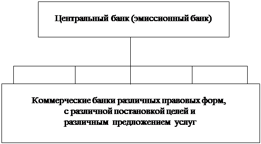 Заключение Подводя итог сказанному, можно определенно сделать вывод о том, что банки сегодня – основная составная часть кредитно-финансовой системы любой страны. Кредитные системы развитых стран имеют различную структуру, но характерно то, что есть и общие черты: во всех развитых странах существуют двухступенчатые банковские системы – Центральный и коммерческие банки. Что касается коммерческих банков, то они занимают господствующее положение на рынке ссудных капиталов. Масштабы их деятельности в экономике развитой страны поистине огромны. Сегодня коммерческий банк способен предложить клиенту до 200 видов разнообразных банковских продуктов и услуг. Следует учитывать, что далеко не все банковские операции повседневно присутствуют и используются в практике конкретного банковского учреждения (например, выполнение международных расчетов или трастовые операции). Но есть определенный базовый набор, без которого банк не может существовать и нормально функционировать (прием депозитов, осуществление денежных платежей и расчетов, выдача кредитов). И это характерно для всех развитых стран. Наблюдается общая тенденция к специализации на более доходных операциях. Практика банковского дела за рубежом представляет большой интерес для складывающейся в России новой хозяйственной системы. Построение нового банковского механизма возможно лишь путем восстановления принципа функционирования кредитных учреждений, принятых в цивилизованном мире и опирающихся на многовековой опыт рыночных банковских структур. Поэтому столь важным представляется изучение зарубежной практики организации банковских систем, которые продемонстрировали свою высокую эффективность. ПРИЛОЖЕНИЕ Рис. 1 Двухступенчатая банковская система.