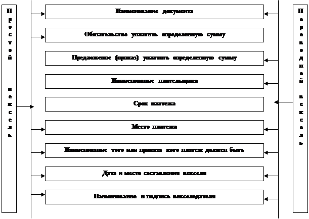 Вексель может быть только в бланковой форме (ст. 4 Закона РФ «О переводном и простом векселе»), поэтому к оформлению векселя предъявляются жесткие требования. Вексель должен быть составлен в письменной форме, либо на специальном вексельном бланке, либо на простом листе бумаги с обязательным соблюдением всех реквизитов. Вексель может быть составлен на любом языке, но следует учитывать, что Банк России принимает к учету векселя предприятий - резидентов, написанные только на русском языке. Законом определен перечень обязательных реквизитов, размещаемых на бланке векселя (таблица 1.3). Обязательные реквизиты векселя Авторская таблица 1.3.