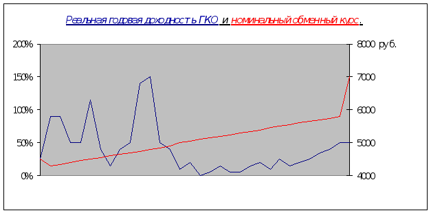 Высокая доходность ГКО сокращала собственные доходы бюджета, привлекая на рынок гособлигаций не только средства граждан, но и собственные средства предприятий и парализуя тем самым инвестиционно - производственную деятельность. Свертывание экономической активности в реальном секторе еще более сокращало налогооблагаемые доходы предприятий, их собственников и работников.