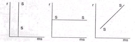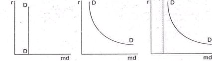 а) б) в) Рис. 2. Спрос на деньги для сделок купли-продажи Спрос на деньги со стороны активов зависит от нормы ссудного процента (рис. 2, б). Кривая общего спроса на деньги параллельна кривой спроса со стороны активов, но сдвинута вправо по оси абсцисс на величину спроса на деньги для сделок купли-продажи товаров (рис. 2, в). Предложение денег определяется эмиссией денег и зависит от денежно-кредитной политики Банка России. В условиях инфляции, когда требуется сокращение количества денег в обращении, кривая предложения денег может быть перпендикулярна к оси абсцисс. Если необходимо фиксировать норму ссудного процента, то кривая предложения параллельна этой оси. Если же необходимо изменить и количество денег в обращении и норму ссудного процента, то кривая предложения располагается наклонно к оси абсцисс (рис. 3).