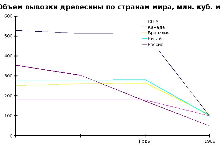 Леса — огромное национальное богатство и пользоваться богатствами «зеленого океана» надо разумно, по-хозяйски, стремясь не только к получению максимального экономического и экологического эффекта, но и их сохранению и приумножению. К сожалению, за последние десятилетия произошло сокращение лесного покрова планеты из-за расчистки лесных площадей под сельскохозяйственное пользование, а также чрезмерных рубок в ряде обширных регионов. Наблюдается ослабление и гибель лесов в результате загрязнения окружающей среды и пожаров. Согласно оценкам, ареал тропических лесов ежегодно сокращается на 11-15 млн.га. Это больше, чем площадь Австрии. Посредническая деятельность на рынке лесного сырья.1.1 Характеристика лесоперерабатывающей отрасли.В Российской Федерации лесозаготовительная промышленность находится в кризисном состоянии (табл. 2). Объем вывозки древесины по странам мира, млн. куб. м. Таблица 2.