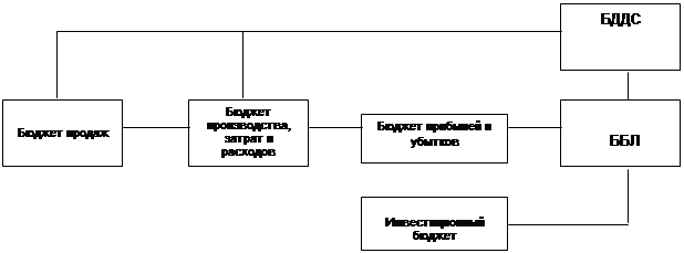 Рис. 2. Схема построения Основного бюджетаОсновной (сводный) бюджетПостроить финансовые бюджеты возможно, если определиться со стратегией предприятия, сформировать продуктово - ассортиментную программу и обоснованный план продаж. Определить планируемые инвестиции и составить бюджет инвестиций. Формируя далее бюджет производства и набор структурированных бюджетов затрат, необходимых для обеспечения производства и реализации товаров (услуг), получим большую часть необходимых данных для построения финансовых бюджетов. Такой комплекс операционных (производственных) и финансовых бюджетов называется Основной, или сводный, бюджет (master budget), и методика построения его, можно сказать, является классикой бюджетирования. Методика построения Основного бюджета и финансовых бюджетов в его рамках является весьма объемной и требует большого количества информации.