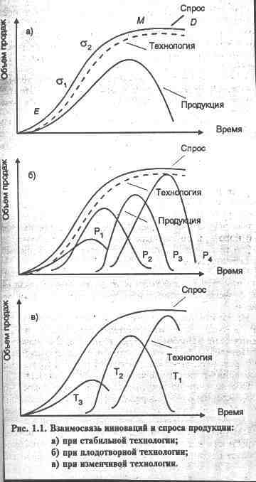 существенных изменений первоначальной технологии их производства. И только в варианте изменчивой технологии (рис. 1.в) потребность в инновациях для поддержания жизненного цикла спроса постоянна на всех его стадиях. На территории Российской Федерации существует около 15 тыс. структур, поддерживающих малый бизнес. Большинство из них создано или работает при содействии бывшего Госкомвуза (вошедшего в Министерство общего и профессионального образования РФ). Высшая школа имеет около 800 малых фирм, объединенных в технопарки. Целью технопарков является стимулирование малого инновационного предпринимательства. Кроме технопарков, существуют бизнес-инкубаторы, цель которых — реализация любого сулящего прибыль проекта. Фирмы-патиенты работают на узкий сегмент рынка и удовлетворяют потребности, сформированные под действием моды, рекламы и других средств. Они действуют на этапах роста выпуска продукции и одновоеменно на стадии падения изобретательской активности. В сфере крупного стандартного бизнеса действуют фирмы-виоленты.Фирмы-виоленты — это фирмы с "силовой" стратегией. Они обладают крупным капиталом, высоким уровнем освоения технологии. Фирмы-коммутанты действуют на этапе падения цикла выпуска продукции. Их научно-техническая политика требует принятия решений о своевременной постановке продукции на производство, о степени технологической особенности изделий, выпускаемых виолентами, о целесообразных изменениях в них согласно требованиям специфических потребностей.