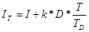(1) где IT — прибыль за период времени Т; I — прибыль за этот период без учета прибыли, приносимой непосредственно клиентами-дебиторами; k — коэффициент пропорциональности между прибылью без учета постоянных расходов (т.е. прибылью, пропорциональной выручке от реализации) и выручкой от реализации товаров; D — объем дебиторской задолженности; Т — период времени, за который считается прибыль; TD — период обращения дебиторской задолженности. Рассмотрим подробнее, что представляет собой коэффициент k. Напишем выражение для прибыли за период времени Т:
