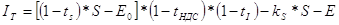 где S — оборот Поставщика по отсрочке платежа; Е0 — затраты на приобретение реализуемых товаров; Е — остальные расходы фирмы; ts — ставка налогов, исчисляемых от S (налог на пользователей автомобильных дорог, сбор на содержание жилищного фонда и т.п.); tндс - ставка НДС; tI — ставка налога на прибыль; kS — коэффициент расходов, пропорциональных S (в нашем случае — комиссия Фактора). По-видимому, Eо пропорционально S. Eo = k0 * S, (3) где коэффициент k0 будет определяться средним соотношением цен приобретения и продажи товаров. Подставив (3) в (2), получим: IT = k * S - E,