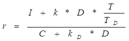 Теперь распишем подробнее величины D и TD: где d — количество дебиторов; Di — объем дебиторской задолженности i-то дебитора; TDi — время, через которое i-и дебитор погашает задолженность. Теперь вернемся к выражению (1). Сначала ответим на вопрос — имеет ли смысл наращивать объем дебиторской задолженности одного дебитора при неизменной оборачиваемости? Действительно, прибыль возрастет, но будет необходимо увеличить вложенный в бизнес капитал — потребуется увеличение объема оборотных средств Поставщика: СD = C + ko * D + t0 * D, где С — капитал, вкладываемый в данный бизнес, за минусом дебиторской задолженности. По сути, это все строки актива баланса, так или иначе обеспечивающие вместе с данной дебиторской задолженностью прибыль I; ko*D — дебиторская задолженность в ценах закупки реализуемых товаров; t0*D — дебиторская задолженность, связанная с выплатой налоговых платежей до момента реального поступления денежных средств за отгруженные товары. Она характерна только для бухгалтерской политики учета реализации товаров по факту отгрузки. При политике же учета реализации товаров по факту поступления денежных средств за отгруженные товары эта величина равна нулю; to = ts + tндс* (1 - ts - ko) + tI (1 - ts - ko)*(l - tндс ) (5) — суммарная ставка налогов, пропорциональных выручке от реализации. Таким образом, СD = С + kD * D, (6) где kD = ko + to. (7) Разделив (1) на (6), получим выражение для рентабельности: