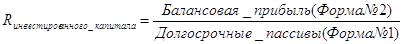 ( 2.1.5-2) С помощь этого коэффициента определяется эффективность использования организацией своего совокупного имущества. Рентабельность инвестированного капитала: