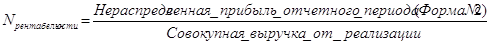 (2.1.5-4) Значение данного коэффициента показывает, сколько прибыли приходится на единицу собственного капитала. Иногда, целесообразно рассчитывать норму рентабельности. Этот показатель характеризует финансовую политику компании, с точки зрения генерации прибыли от основной деятельности предприятия. Формула расчета: