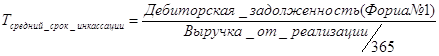 ( 2.1.6-2) Увеличение этого показателя в динамике, в общем случае, говорит об повышении эффективности использовании оборотных средств, и следовательно, об повышении эффективности работы предприятия в целом. Для различных отраслей народного хозяйства данный коэффициент может меняться. Например, в торговых организациях, по сравнению с производственными предприятиями с сопоставимого размера, в среднем этот показатель выше. Средний срок инкассирования дебиторской задолженности показывает количество дней, которые требуются контрагентам предприятия для оплаты предоставленных товаров и услуг. Данный показатель выражается в днях и рассчитывается по формуле: