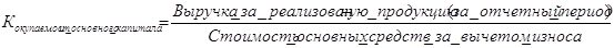 (2.1.6-1) Этот коэффициент показывает, сколько приносит выручка от реализации на единицу стоимости активов.