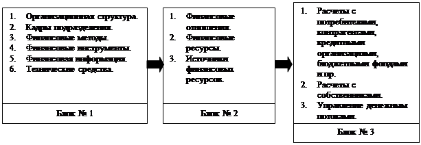 Рис. 1.3-1Логика функционирования отдела выглядит следующим образом: информация, поступающая из бухгалтерских отчетов, данные из внешней среды в Блоке № 1 обрабатывается при помощи финансово-экономического анализа, с использованием известных процедур. На основании полученных данных применяются соответствующие механизмы воздействия на переменные в Блоке № 2. Такое воздействие, в свою очередь проявляется в изменении параметров в Блоке № 3. Такая цепочка воздействий повторяется непрерывно на протяжении всего процесса управлению финансовой деятельностью. Следует заметить, что последующий цикл воздействий на те или иные параметры, напрямую зависит от результатов предыдущих реакций системы на воздействие. Можно сказать, что образуется некий цикл: воздействие – реакция – корректировка воздействия – воздействие. Целевой установкой служит основные задачи финансового менеджмента как такового и краткосрочные планы развития организации. Очевидно, что организационная структура являет собой совокупность взаимосвязанных и взаимодействующих структурных и функциональных подразделений. Функционально и структурно принято выделять два основных подразделения: планово-аналитический и учетно-контрольный. Учетно-контрольную функцию, в современных российских предприятиях, берет на себя бухгалтерский отдел. Хотя данные функции, в другом виде, также присущи и финансовому отделу. Планово-аналитическая функция, это прерогатива финансового отдела. Учитывая характеристики объекта и субъекта финансового управления, сама «технология» и инструменты обладают определенной спецификой (Например, различные временные горизонты). Совокупность инструментов финансового управления определяется понятием финансовый механизм управления. Финансовый механизм управления – это совокупность способов, методов организации финансовых отношений на предприятии. К ним принято относить: финансовые методы и финансовые рычаги. Финансовые методы: · Анализ; · Планирование; · Прогнозирование (на этапе перспективного планирования); · Стимулирование; Финансовые рычаги (механизмы воздействия): · Нераспределенная прибыль; · Амортизация; · Выручка; · Прибыль и пр. Информационным обеспечением финансового управления является: финансовая, производственная и коммерческая информация. Основу финансовой информации составляет данные бухгалтерского и внутреннего учета. К данным бухгалтерского учета предъявляются следующие условия: – Значимость (Своевременность, прогностическая ценность, наличие обратной связи). – Надежность (достоверность, возможность проверки и нейтральность) – Сопоставимость. – Постоянство. Источником производственной и технологической информации является технические и инженерные отделы предприятия. Они разрабатывают технологию производства, составляют планы по количеству и качеству материальных составляющих производственного процесса. Коммерческая информация в основном поступает из внешней среды и может анализироваться в маркетинговом, финансовом и бухгалтерском отделах. Важнейшим элементом механизма управления является анализ. В свою очередь, финансовый анализ является частью общего, более полного анализа хозяйственной деятельности, состоящего из двух основных разделов: · Финансового анализа. · Управленческого анализа. Ф