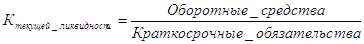 (2.1.3-2) Очевидна интерпретация данного показателя, – сколько собственных средств приходится на единицу заемного. Само по себе данное значение мало информативно. Необходимо рассматривать его в динамике, сравнивая со средними по отрасли. Следует отметить, еще один из коэффициентов, наиболее часто упоминающихся в финансово-экономической литературе - Коэффициент покрытия процентов. Он равен отношению балансовой прибыли организации к сумме выплачиваемых процентов. Его значение должно быть больше единицы, в противном случае предприятия будет не способно в полном объеме обслуживать свою задолженность. Данный показатель также необходимо рассматривать в динамике и сравнении. 2.1.4 Анализ ликвидности и платежеспособности Показатели данной группы коэффициентов, дают возможность оценить способность предприятия в срок и полном объеме производить расчеты с контрагентами и кредитными организациями. Краткосрочная задолженность может погашаться из различных источников, но использование для этих целей вне оборотного капитала будет не эффективно. Во-первых, это связанно с временным лагом, необходимым для превращения основных фондов в ликвидные активы. Во-вторых, учетная стоимость основных средств, может существенно отличать от той, которую можно получить при продаже. Следовательно, при анализе способности предприятия рассчитываться по своим обязательствам, за базу берется наиболее ликвидная часть баланса предприятия – оборотные средства. Абсолютный показатель, характеризующий величину оборотных средств, выводится по данным баланса по следующей формуле: WC=CA-CL, (2.1.4-1) Где WC – величина оборотных средств; CA – оборотные активы; CL – краткосрочные обязательства. Вычислив данную величину, можно определить объем оставшихся средств у предприятия, если оно выполнит все свои кредитные обязательства. Этот расчетный показатель, зависит как от структуры активов, так и от структуры источников средств. Он имеет важное значение для предприятий, занимающихся коммерческой деятельностью и другими посредническими операциями. При прочих равных условиях рост этого показателя в динамике рассматривается как положительная тенденция. По степени ликвидности, принято выделять три группы оборотных активов: производственные запасы, дебиторская задолженность, денежные средства и их эквиваленты. Исходя из этого деления, мы получаем три основных аналитических коэффициента: Коэффициент текущей ликвидности.