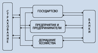Большое место в составе потребностей в денежных средствах занимают государственные потребности. Государство, благодаря финансам, выполняет важную роль в регулировании экономики, в развитии социально- культурной сферы, в защите окружающей среды, в обеспечении без- опасности страны и граждан. Развитие рыночных отношений, базой которых является частная собственность, невозможно без страхования, которое образует особую сферу финансов. В страховании реализуются общественные и личные потребности в страховой защите от различных неблагоприятных явлений и случайностей. С развитием товарного производства возникает объективная необходимость страховой защиты имущественных интересов каждого собственника. Это достигается с помощью финансовых ресурсов страхования. Развитие рыночных отношений невозможно представить без системы кредитования. Кредитная система как совокупность кредитно-финансовых институтов аккумулирует свободные денежные капиталы, доходы, сбережения различных субъектов рынка и предоставляет их в ссуду фирмам, правительству и частным лицам. В системе кредитования образуются своеобразные финансовые отношения, что позволяет выделить их в отдельную сферу. Финансовая система характеризуется не только составом входящих в нее частей, но и потоками финансовых ресурсов (финансовыми потоками), которые связывают главных субъектов финансовых отношений. Систему взаимных финансовых связей и потоков можно изобразить в следующей упрощенной схеме (см. схему 2).