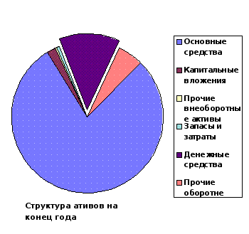 рис.3.4. Структура активов на начало и конец года
