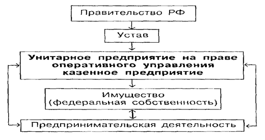Гражданское законодательство предусматривает возможность функционирования унитарного предприятия в качестве коммерческой организации. Отличительная черта унитарного предприятия - это отсутствие права собственности на закрепленное за ним имущество. Имущество унитарного предприятия является неделимым и не распределяется на вклады или долевые участия работников. Собственник имущества предприятия, основанного на праве хозяйственного ведения, определяет предмет и цели его деятельности, осуществляет контроль за использованием по назначению и сохранностью принадлежащего предприятию имущества. Часть прибыли от использования имущества принадлежит собственнику. Унитарное предприятие вправе учреждать дочерние предприятия, правовой статус которых отличен от статуса дочерних хозяйственных обществ. Дочернее предприятие - юридическое лицо и распоряжается имуществом. переданным ему унитарным предприятием-учредителем в хозяйственное ведение. К некоммерческим организациям относятся потребительские кооперативы, общественные и религиозные организации и объединения, различные фонды, учреждения, а также объединения юридических лиц. Организационная схема казенного предприятия