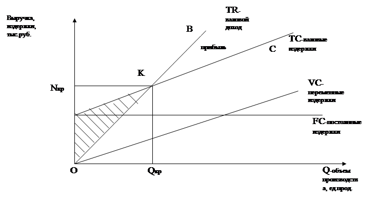. Расчет точки безубыточности[1] Кроме того, на нее оказывают влияние соблюдение договорных обязательств, состояние расчетов между поставщиками и покупателями и др. Из прибыли производятся отчисления в бюджет, уплачиваются проценты по кредитам банка. При прогнозировании прибыли желательно также выявить инфляционную составляющую ее прироста. Для этого можно предложить несложную методику, основанную на структурных показателях выручки от продаж. Расчет влиянияинфляционных факторов производится путем умнржения удельного веса данного фактора в выручке на прирост соответствующего индекса инфляции. Инфляционная прибыль (рентабельность) Будет определена как разность между влиянием инфляции на выручку и влиянием инфляции на составные элементы затрат.[2] Главное предназначение прибыли в современных условиях хозяйствования – отражение эффективности производственно-сбытовой деятельности предприятия. Это обусловлено тем, что в величине прибыли должно находить отражение соответствие индивидуальных затрат предприятия, связанных с производством и реализацией своей продукции и выступающих в форме себестоимости, общественно необходимых затрат, косвенным выражением которых должна явиться цена изделия. Увеличение прибыли в условиях стабильности оптовых цен свидетельствуют о снижении индивидуальных затрат предприятия на производство и реализацию продукции. В современных условиях повышается значение прибыли как объекта распределения, созданного в сфере материального производства чистого дохода между предприятиями и государством, различными отраслями народного хозяйства и предприятиями одной отрасли, между сферой материального производства и непроизводственной сферой, между предприятиями и его работниками. Работа предприятия, в условиях перехода к рыночной экономике, связана с повышением стимулирующей роли прибыли. Использование прибыли в качестве основного оценочного показателя способствует росту объема производства и реализации продукции, повышению его качества, улучшению использования имеющихся производственных ресурсов. Усиление роли прибыли обусловлено также действующей системой ее распределения, в соответствии с которой повышается заинтересованность предприятий в увеличении не только общей суммы прибыли, но и особенно той ее части, которая остается в распоряжении предприятии и используется в качестве главного источника средств, направляемых на производственное и социальное развитие, а также на материальное поощрение работников в соответствии с качеством затраченного труда. Таким образом, прибыль играет решающую роль в стимулировании дальнейшего повышения эффективности производства, усиления материальной заинтересованности работников в достижении высоких результатов деятельности своего предприятия. Дальнейшее усиление распределительной и стимулирующей роли прибыли связано с совершенствованием механизма ее распределения. Однако прибыль не может рассматриваться в качестве единственного и универсального показателя эффективности производства. Дополнительная прибыль может быть получена при увеличении объема производственных фондов и снижения эффективности их использования. Изменение экономических показателей за любой временной период происходит под влиянием множества разно