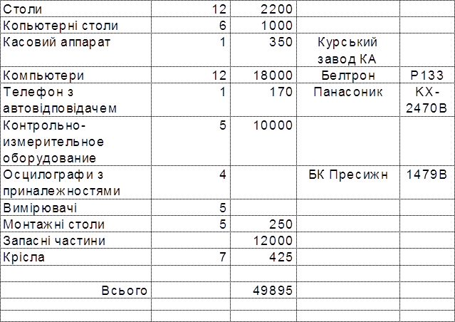 Новий магазин планувалось відчинити в травні 1997 року. Пізніше в нас буде можливість порівняти планові і фактичні показники роботи ВАТ «Орбіта». Прибуток на що інвестується капітал. Новий магазин. Рік Чистий прибуток 1996 54450 1997 60220 1998 131888 Загальний чистий прибуток 246558 Початкові інвестиції 50000 Вартість нового обладнання 56500 Витрати на переїзд включені у вартість нового обладнання. Разом інвестицій (ре інвестицій) 106500. Чистий прибуток за відрахуванням інвестицій: 246558 - 106500 = 14058. Чистий фактичний прибуток для інвестора до кінця 1996 року повинний була скласти 14058 у.о., тобто Процентна (кредитна) ставка для інвестора складе 31,5% від початкової суми інвестицій 106500 у. е. Інвестору прийдеться чекати майже трьох року, щоб дістати прибуток, але до кінця цього періоду вона складе 31,5% від його інвестицій1. Таблиця 4. Прогноз продажів до кінця 1997 року.