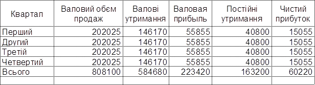 Таблиця 5. Прогноз продажів на 1998 рік.