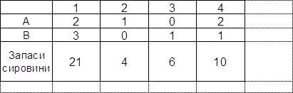 Щоб більш наочно побачити розбіжності в планованих і отриманих результатах, звернемося до діаграми 1, на якій приведені дані по планованому і чистому фактичному прибутку ВАТ «Орбіта». Період із I кварталу 1997 року по період III кварталу 1998 року фактичні результати вище планованих очевидно за рахунок того, що при розробці бізнес плану враховувався тільки продаж комп'ютерів, але на практику, крім торгівлі, на новому місці відразу ж стали надаватися і платні послуги - це очевидно на графіку. Після III кварталу 1998 року фактичні результати різко погіршилися в порівнянні з плановими - 17 серпня 1998 року саме прийшлося на третій квартал, але в третьому кварталі ще не відбулося різкого падіння прибули, тому що наслідки кризи яскраво відбилися лише на IV кварталі. У першому кварталі ситуація декілька поліпшилася, але ще дуже далека від планованої - це пов'язано з тим що ринок комп'ютерів сильно залежить від курсу гривні до долара. Але, безумовно, ситуація не безнадійна. Підприємству ВАТ «Орбіта» можна була б, наприклад, скористатися деталями і комплектуючими виготовленими в країнах Південної і Південно-східної Азії, щоб декілька згладити різке падіння курсу гривні стосовно долара, і, відповідно не так різко підвищувати ціни на свою продукцію. Більш болісно сформована ситуація вдарила по інвесторах - зробити прогноз на подальші перспективи ринку комп'ютерів фірми IBM, AST, AT&T у сформованій ситуації складно. Більш того, очікується тимчасового скорочення або навіть повного відходу цих фірм із російського ринку комп'ютерів. Тому підприємству ВАТ «Орбіта» необхідно терміново підготувати новий інвестиційний план, продумати варіанти скорочення витрат, можливо часткового перепрофілювання торгівлі. Початок роботи місцевої електронної промисловості дасть підприємству можливість висновку договорів на сервісне обслуговування вже російської техніки, на жаль, кількість що випускається продукції місцевими фірмами невелика1. У даному випадку акціонери, розподіляючи прибуток на нові інвестиції у своє підприємство, не одержали планованих результатів. Залишається сподіватися, що криза серпня 1998 року явище з розряду форс мажорних і в подальшій своїй діяльності акціонери, реінвестуя прибуток у ВАТ «Орбіта» будуть більш щасливі. 2.3. Напрямки використання прибули на підприємстві (економіко-математичні методи). Роздивимося напрямки використання прибули на підприємстві за допомогою економіко-математичних методів. Умова задачі. Задано таку економічну ситуацію. ВАТ «Орбіта» здійснює складання виробів двох типів А і В. При цьому використовуються комплектуючі чотирьох видів. Витрата комплектуючого кожного виду на виготовлення одиниці виробу і запас комплектуючих задані в таблиці.
