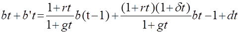 Проблема внешней задолженности требует постоянного контроля, поскольку может оказывать очень серьезное негативное влияние на развитие страны в долгосрочной перспективе (например, финансовая изоляция в случае дефолта по внешнему долгу). Нельзя забывать, что глубокий более чем десятилетний кризис в Латинской Америке, сопровождавшийся длительным спадом производства и исключительно высокой инфляцией, был спровоцирован именно крупными внешними долгами. 4. Управление государственным долгом, его основные проблемы в РФ Под управлением государственным долгом понимается совокупность мероприятий государства по выплате доходов кредиторам и погашению займов, изменению условий уже выпущенных займов, определение условий и выпуску новых государственных ценных бумаг. Управление реальной динамикой долговых обязательств предполагает контроль за двумя важнейшими показателями – величиной государственного долга и стоимостью его обслуживания. В условиях экономического роста важны не абсолютные их размеры, а доля государственного долга в ВВП и соотношение реального процента (стоимости обслуживания за вычетом инфляционной составляющей) и темпа экономического роста. Это нетрудно показать, если представить процесс накопления долга в виде следующего уравнения: (1) bt = (1+rt)* b(t - 1) + dt (1+gt) Где Bt – внутренний долг на конец периода t (в % к ВВП); Rt – усредненный реальный процент ex post в этом же периоде; Gt – темп роста ВВП (в %); Dt – доля первичного дефицита бюджета (в % к ВВП).