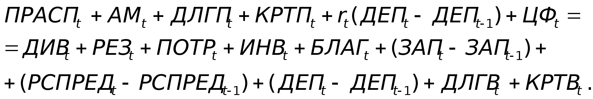образом: где ДЕП, r - депозиты предприятия в коммерческих банках и ставка депозитного процента; ДИВ - дивиденды; ДЛГП, КРТП - долгосрочные и краткосрочные кредиты, полученные в текущем периоде; ДЛГВ, КРТВ - долгосрочные и краткосрочные кредиты, возвращенные в текущем периоде, а также выплаченные по ним из прибыли проценты; ЗАП - запасы и затраты предприятия; РСПРЕД - средства на расчетном счете предприятия. Движение основных фондов описывается следующим уравнением :