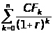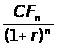 где CF1 — чистый денежный поток, r — стоимость капитала, привлеченного для инвестиционного проекта. Термин «чистый» имеет следующий смысл: каждая сумма денег определяется как алгебраическая сумма входных (положительных) и выходных (отрицательных) потоков. Например, если во второй год реализации инвестиционного проекта объем капитальных вложений составляет 15000$, а денежный доход в тот же год – 12000$, то чистая сумма денежных средств во второй год составляет 3000$. В соответствии с сущностью метода современное значение всех входных денежных потоков сравнивается с современным значением выходных потоков, обусловленных капитальными вложениями для реализации проекта. Разница между первым и вторым есть чистое современное значение стоимости, которое определяет правило принятия решения. Процедура метода: Шаг 1. Определяется современное значение каждого денежного потока, входного и выходного. Шаг 2. Суммируются все дисконтированные значения элементов денежных потоков, и определяется критерий (NPV). Шаг 3. Принимается решение: