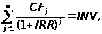 где CFj – входной денежный поток в j-й период, INV – значение инвестиции. Решая это уравнение, находим значение IRR. Схема принятия решения на основе метода внутренней нормы прибыльности имеет вид: