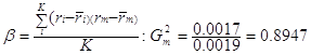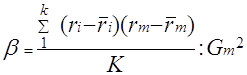 Для дальнейшего анализа структуры портфеля используем едва ли не самый главный показатель рынка ценных бумаг - бета-коэффициент (b ), рассчитываемый по формуле