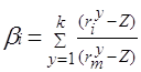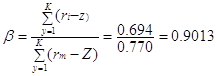 где `ri - ожидаемый (средний) доход на конкретную ценную бумагу; Z- ставка дохода на безрисковую ценную бумагу; bi - бета-коэффициент; `rm - средняя рыночная ставка дохода; (`rm-Z)- рыночная премия за риок. формула (2.12) получена после ряда преобразований формул (2.9) и (2.10).