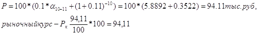 выплачиваться ежегодно в конце года процентные платежи в сумме 10 тыс.руб. ( Рыночная цена облигации по (2.25) составит: