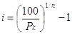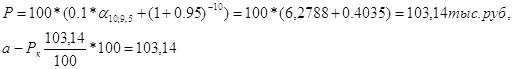 Вместе с тем текущая доходность не учитывает изменения цены облигации за время ее хранения, т.е. другого источника дохода. Полная доходность учитывает все источники дохода. Показатель полной доходности измеряют процентной ставкой, называемой ставкой помещения. Начисление процентов по ставке помещения на цену приобретения дает доход, эквивалентный фактически получаемому по ней доходу за вес! период обращения этой облигации до момента ее погашения. Ставка помещения является расчетной величиной и в явном виде на рынке ценных бумаг не выступает. Стоимость облигации равна сумме двух слагаемых - современной стоимости ее аннуитетов (приведенной сумме ежегодных выплат процентных платежей) и современной стоимости ее номинала: P = N g an/i + N (1+i)-n = N (gan/i + (1+i)-n) (2.23) Если использовать 2.1, то P = (gan/i + (1+i)-n) * 100 где Р - рыночная цена облигации; Рк – курс облигации; N - номинал облигации; g- купонная ставка; n- время от момента приобретения до момента погашения облигации; i - ссудный процент, предлагаемый банками в момент продажи облигации. Пример 2.3. По облигации номинальной