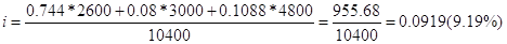 приобретения ( где - количество облигаций -того вида; - цена приобретения облигаций/'-того вида; - платежи в момент 7^; - дисконтный множитель по ставке i. Средняя ставка помещения (как показатель средней доходности) может быть приближенно определена из ставок помещения каждого вида облигаций, и качестве весов можно использовать стоимость облигаций по ценам приобретения. I = S ijQjPj : S QjPj (2.37) Существует и другой метод взвешивании. В качестве весов используется произведение показателей изменчивости на стоимость приобретения облигаций, т.е. I = S ij Dj QjPj : S DjQjPj (2.38) Пример 2.9. В таблице приведены данные портфеля облигаций с соответствующими параметрами. Рассчитать доходность этого портфеля облигаций. Предварительно рассчитанные ставки помещения и показатели изменчивости облигаций данного портфеля равны: Ia = 7,44 Da = 6,0 Iб = 8,0 Dб= 3,5644 Iв = 10.88 Dб = 5,5163 Тогда средняя ставка помещения портфеля по (2.15) составит:
