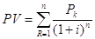 где Pk - годовые доходы; ∑ IC - сумма всех инвестиций; t - срок завершения инвестиций. Пример 3.8. Инвестиционный проект характеризуется следующими членами потока платежей, которые относятся к концу года. Ставка процентов для дисконтирования принята i = 10 %.