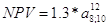 NPV = 1.3 * 5.5752 * 0.7513 – 0.5 * 4 * 2.5784 = 5.4452 – 5.1568 = 0.2884 млн.у.д.е. Графически этот период изображен на рис. 3.1.