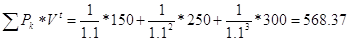 т.е. эта величина меньше суммы инвестиций с начисленными процентами 342,97 < 470. За три года современная величина дохода будет равна