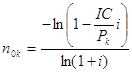 т.е. больше, чем стоимость инвестиций. Отсюда, срок окупаемости (при условии, что доход может выплачиваться и за часть года) составит nок = 2+ ((470+342.97) : 225,4) = 2,56 года. Величина 225,4 получена как 3500 • 1,1-3. Рассмотрим определение срока окупаемости для доходов, которые можно представить в виде некоторых упорядоченных последовательностей (аннуитетов). Начнем с самого простого случая: с равномерного дискретного (один раз в конце года) поступления доходов. Из условий полной окупаемости за срок nок при заданной ставке –i следует равенство суммы капитальных вложений современной стоимости аннуитета.
