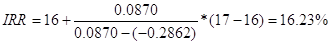 Уточним величину ставки, для чего примем значения процентных ставок, равное i1 = 16 %, i2 = 17 % и произведем новый расчет. Таблица 3.4.