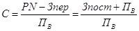 где С - сила воздействия производственного рычага; P - цена единицы продукции; N - количество единиц реализованной продукции; PN - объем реализации; Зпер - общая величина переменных затрат; Зпост - общая величина постоянных затрат; ПВ - валовая прибыль. Для нашего случая сила воздействия производственного рычага в первом году равна С=(2500+7500)/7500=1,3333 Величина С = 1,3333 означает, что с увеличением выручки от реализации, допустим, на 15 % (как в рассматриваемом случае), при-; быль возрастет на 1,3333 • 0,15 = 20 %. Уяснив возможность использования операционного рычага, перейдем к рассмотрению понятия, имеющего в экономической литературе множество названий (порог рентабельности, точки самоокупаемости, точки безубыточности и т.д.). Остановимся на названии "точка безубыточности". Точке безубыточности соответствует такая выручка от реализации продукции, при которой производитель уже не имеет убытков, но еще не имеет и прибылей, т.е. результат от реализации после возмещения переменных затрат достаточен для покрытия постоянных затрат, а прибыль равна нулю. Следовательно, в точке безубыточности разность между выручкой от реализации продукции и суммой переменных и постоянных затрат равна нулю, т.е. PN - (Зпост + VN ) = 0, (3.15) где Зпост - затраты постоянные; V - переменные издержки на единицу продукции; N - количество (единиц) выпущенной продукции; Р - цена единицы продукции. Преобразовав формулу (3.15), получаем, что для достижения точки безубыточности необходим выпуск следующего количества изделий: Пример 3.19. Компании производит продукт А. Величина постоянных затрат - 200000 у.д.е. для данного производства. Максимально возможный объем выпуска продукции составляет 1000 единиц. Единица продукции реализуется по цене 750 у.д.е., переменные затраты составляют 250 у.д.е. за единицу продукции. Тогда по формуле (3.16) N =200000/(750-250) = 400 единиц, т.е. при выпуске 400 единиц изделий производитель ни терпит убытка, но и не имеет прибыли. Выпуск изделий менне 400 единиц будет убыточен. График на рис 3.2. показывает поведение переменных и постоянных затрат, также выручки от продаж при различных значениях объема продаж для приведенных исходных данных. Линия фиксированных затрат показывает, что при изменении объемов продам с 0 до 1000 единиц продукта А сумма постоянных затрат остается неизменной и составляет 200 тыс.у.д.е. Прямая переменных затрат показывает, что их общая сумма изменяется от 0 до 250 тыс, у.д.е. .величина общих затрат изменяется от 200 тыс.у.д.е. при нулевом выпуске до 450 тыс. (200 тыс. + 250 тыс.) при объеме выпуска 1000 шт. Прямая валовой выручки от продаж показывает изменение суммы выручки с 0 у.д.е. при нулевом объеме продаж до 750 тыс.у. д.е. при максимальном объеме продаж.