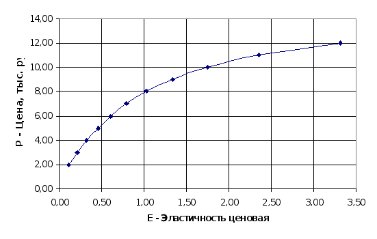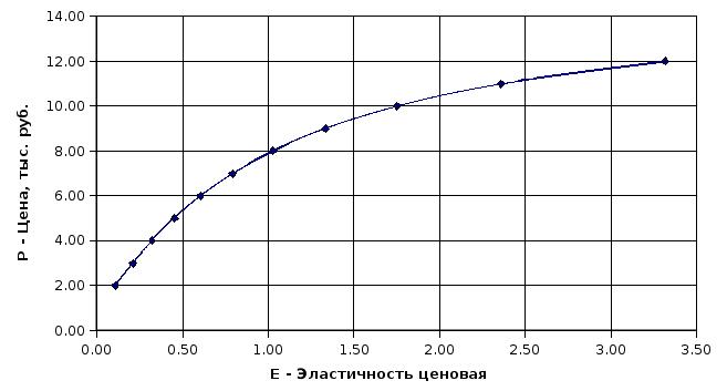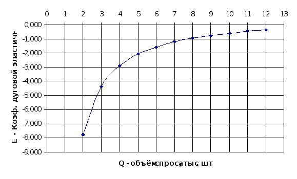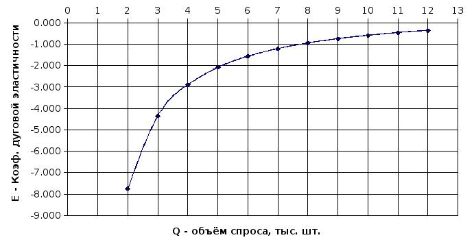 Рисунок 2. Кривая коэффициента дуговой эластичности спроса |