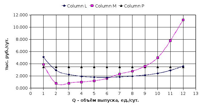 По рассчитанным данным построим графики зависимости от объёмов производства:
