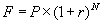где F - будущая, а P - современная ценность (исходная величина) денежной суммы, r - процентная ставка (в десятичном выражении), N - число периодов начисления процентов. Трансформация вышеприведенной формулы в случае решения обратной задачи выглядит так: